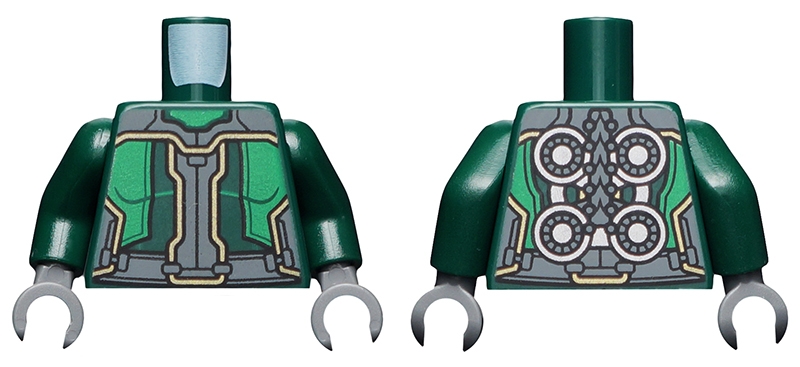 Torso Armor with Dark Bluish Gray and Green Panels, Gold Accents, Silver Circles on Back Pattern / Dark Green Arms / Dark Bluish Gray Hands