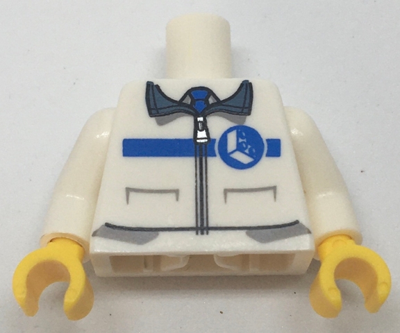 Torso Zipper Jacket with Blue LEGO Life Logo and Tie Pattern / White Arms / Yellow Hands