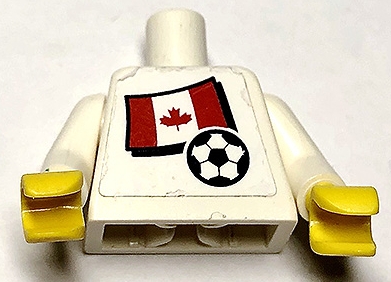 Torso Soccer White/Blue Team, Canada Flag Sticker Front, Black Number Sticker Back Pattern (specify number in listing) / White Arms / Yellow Hands