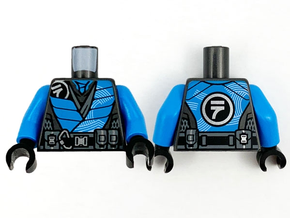 Torso Tunic Pearl Dark Gray Ninjago Logogram Letter N, Dark Azure Panels, Dark Bluish Gray Mesh and Belt Pattern / Dark Azure Arms / Black Hands