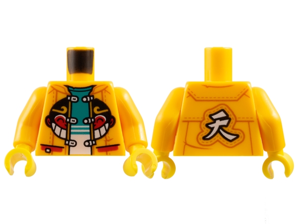 Torso Jacket with Monkie Kid Logo, Dark Turquoise and White Shirt, Chinese Logogram '天' (Sky) Pattern / Bright Light Orange Arms / Yellow Hands