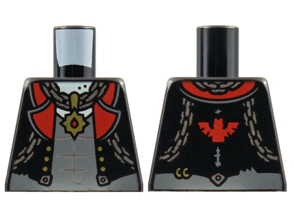 Torso Vest with Red Lapels, Dark Bluish Gray Shirt, Silver Chains, Gold Pendant, Bat on Back Pattern