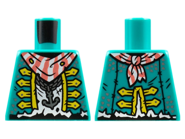 Torso Vest with Yellow Trim, Coral and White Bandana, Silver Anchor Necklace, White Tattered Shirt Pattern
