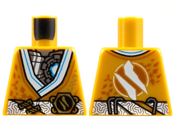 Torso Tunic, White Hems and Belt, Silver Chest with Dark Azure Light, Ninjago Logogram Letter Z Pattern