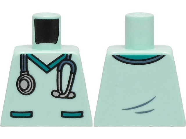 Torso Hospital Scrubs with Dark Turquoise Pockets and Collar and Sand Blue and Silver Stethoscope Pattern