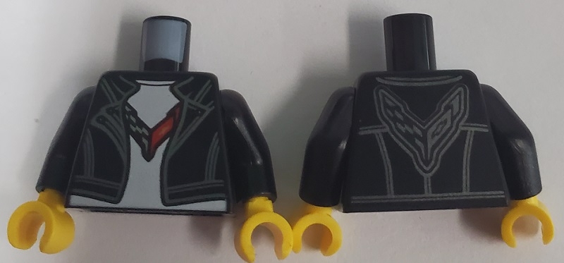 Torso Leather Jacket over White Shirt with Chevrolet Logo Front and Back Pattern / Black Arms / Yellow Hands