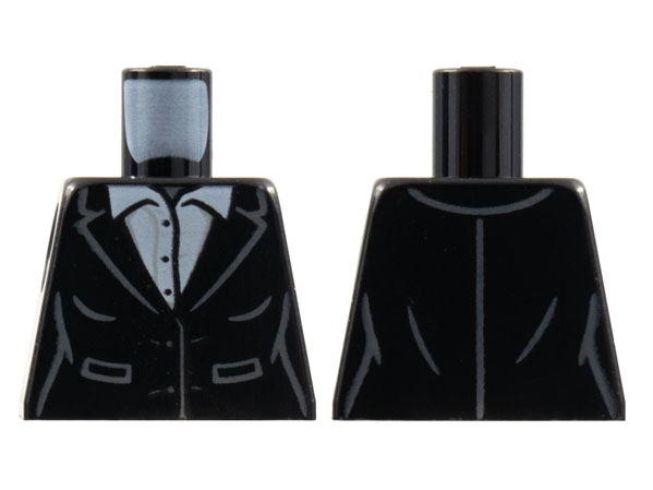 Torso Female Suit Jacket with Pockets over White Button Up Shirt with Collar, Dark Bluish Gray Neck Pattern