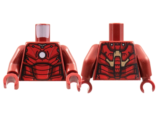 Torso Armor with White Circle Arc Reactor, Red Panels, Gold Trim on Back, 3 Detailed Spine Segments Pattern (Iron Man Mark 3) / Dark Red Arms / Dark Red Hands