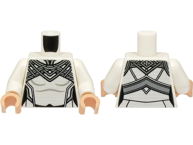 Torso Female Silver Armor, Collar and Hexagons Pattern / White Arms / Light Nougat Hands