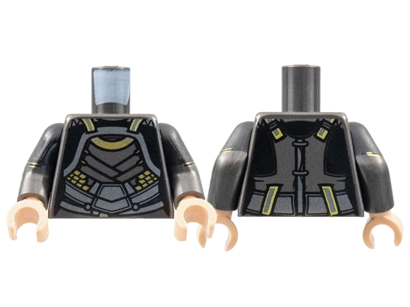 Torso Female Armor, Silver Plates, Gold Trim Pattern / Pearl Dark Gray Arms with Black Short Sleeves, Gold Circles Pattern / Light Nougat Hands