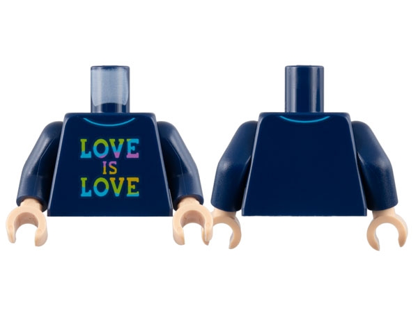 Torso Collared Shirt, Rainbow 'LOVE IS LOVE' Pattern / Dark Blue Arms / Light Nougat Hands