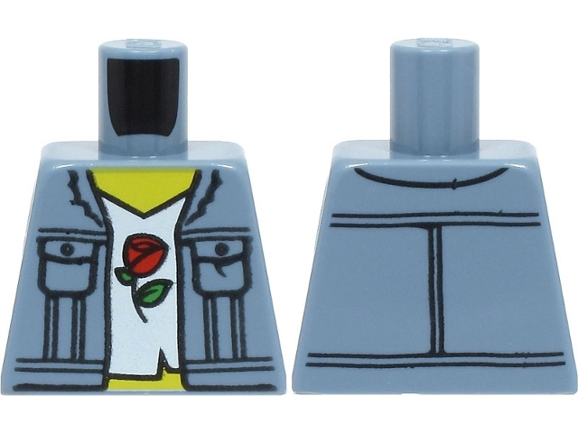 Torso Denim Vest with Pockets, White Shirt, Red Rose Pattern