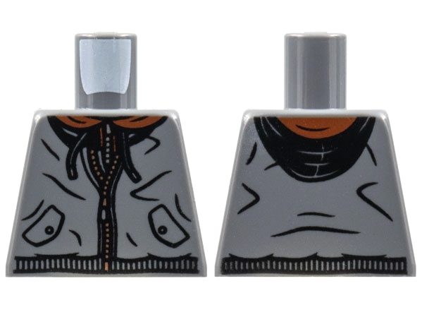 Torso Hoodie, Black Hood and Drawstrings, Reddish Brown Collar, Silver Zipper Pattern