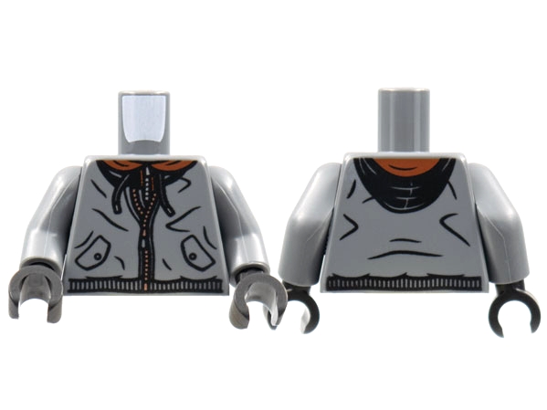 Torso Hoodie, Black Hood and Drawstrings, Reddish Brown Collar, Silver Zipper Pattern / Dark Bluish Gray Arms / Black Hands