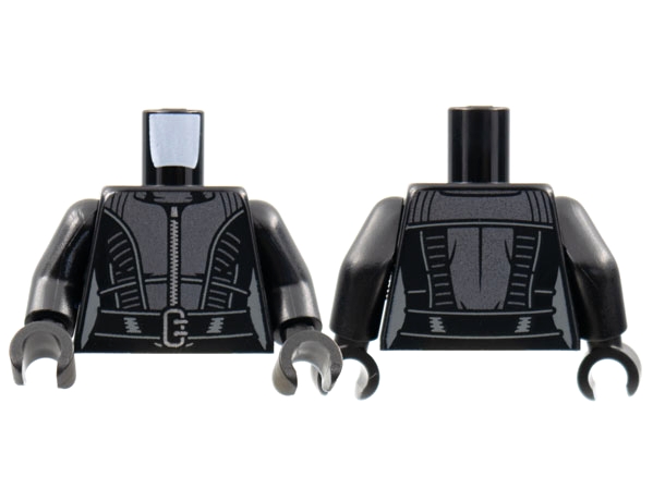 Torso Female Catsuit, Pearl Dark Gray Center Panel and Trim, Silver Zipper and Buckle Pattern / Black Arms / Black Hands