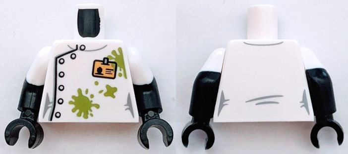 Torso Lab Coat Dirt Stains with White Buttons and ID Badge Pattern (BAM) / Black Arms with Molded White Short Sleeves Pattern / Black Hands