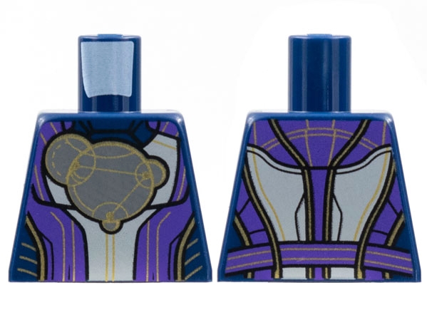 Torso Armor, White Center Panel, Dark Bluish Gray Circles, Gold Piping, Dark Purple Trim Pattern