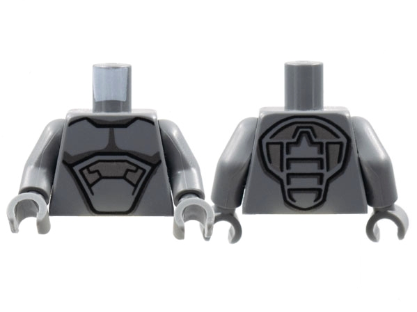 Torso Armor, Silver and Black Panels and Contours Pattern / Dark Bluish Gray Arms / Dark Bluish Gray Hands