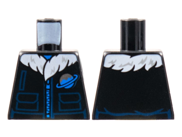 Torso Coat, White Fur Lining, Blue Zipper, Dark Blue Pockets, Ice Planet Logo Pattern