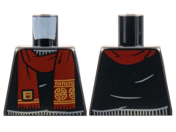 Torso Sweater, Dark Red Scarf with Gold Chinese Circles Pattern