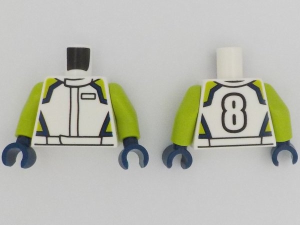 Torso Racing Jacket with Lime and Dark Blue Highlights, Number 8 on Back Pattern / Lime Arms / Dark Blue Hands