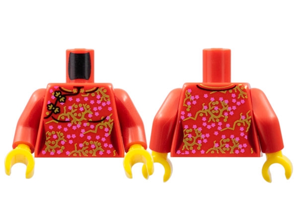 Torso Female Oriental Dress with Dark Pink Flowers on Gold Branches Pattern (BAM) / Red Arms / Yellow Hands