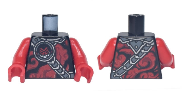 Torso Red Smoke, Black and Silver Collar and Strap, Black and Red Monkey Head with White Pointed Teeth Pattern / Red Arms / Red Hands