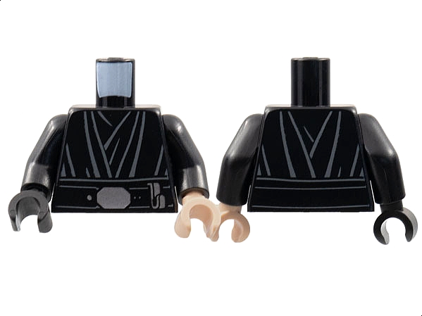 Torso Tunic, Dark Bluish Gray Contour Lines, Large Silver Buckle and Lightsaber Clip Pattern / Black Arms / Light Nougat Hand Left / Black Hand Right