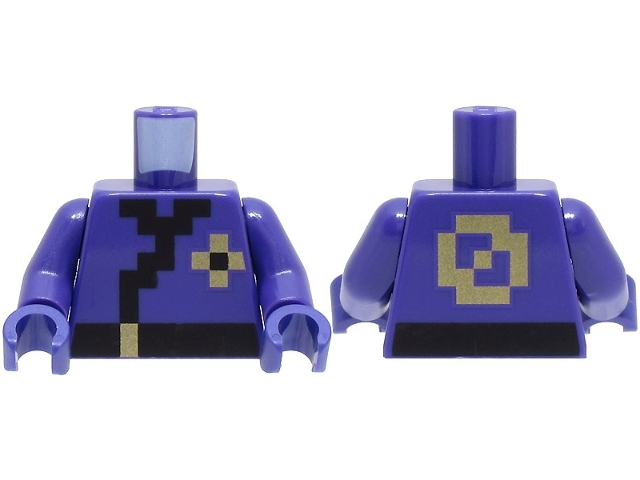 Torso Pixelated Ninja Tunic with Black Hems and Sash, Gold Buckle and Symbols Pattern / Dark Purple Arms / Dark Purple Hands