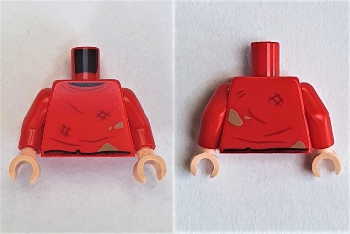 Torso Crew Neck Sweater, Creases, Patches, Dark Tan Stains Pattern / Red Arms / Light Nougat Hands