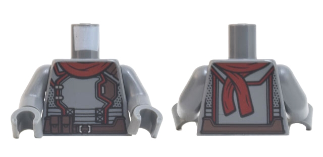 Torso Jumpsuit with Dark Red Trim and Scarf, Dark Brown Belt with Pouches Pattern / Dark Bluish Gray Arms / Dark Bluish Gray Hands