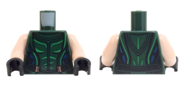 Torso Female Outline, Vest with Black and Bright Green Lines, Blue Trim, Belt with Buckles Pattern / Light Nougat Arms / Black Hands