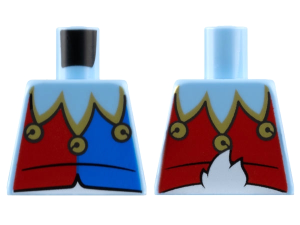 Torso Jester Collar with Gold Trim and Bells, Red and Blue Panels, White Duck Tail on Back Pattern