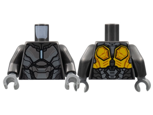 Torso Armor, Silver and Dark Bluish Gray Panels, Metallic Light Blue Rod Arc Reactor, Pearl Gold Trim on Back Pattern / Pearl Dark Gray Arms / Dark Bluish Gray Hands