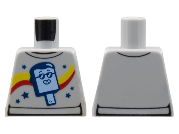Torso Sweater with Yellow and Red Curvy Stripes, Bright Light Blue Ice Pop (Freezer / Lollipop / Lolly / Pole / Popsicle / Stick) with Face, Dark Blue Stars Pattern
