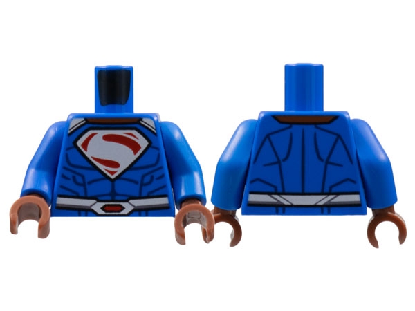 Torso White Shoulders and Belt, 'S' in Red Pentagon, Dark Blue Muscle Lines Pattern / Blue Arms / Reddish Brown Hands