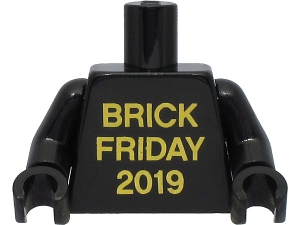 Torso with Gold 'BRICK FRIDAY 2019' Pattern / Black Arms / Black Hands