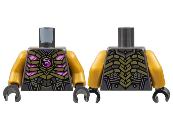 Torso Armor, Gold Ribs, Magenta Dragon Logo and Trim, Silver Scales Pattern / Pearl Gold Arms / Black Hands