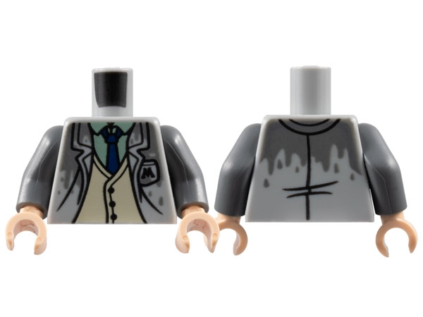Torso Jacket with Dark Bluish Gray Wetness, Letter M on Pocket, Tan Vest, Sand Green Shirt, and Dark Blue Tie Pattern / Dark Bluish Gray Arms / Light Nougat Hands