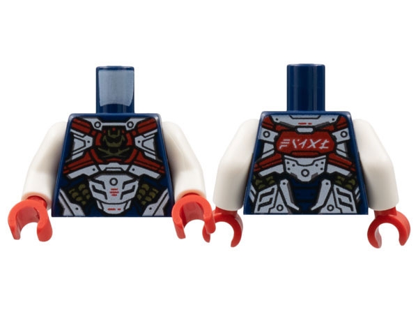 Torso Armor, Dark Red Cross Belts, Gold Samurai Logo, White Plates, Ninjago Logogram 'PIXAL' on Back Pattern / White Arms / Red Hands