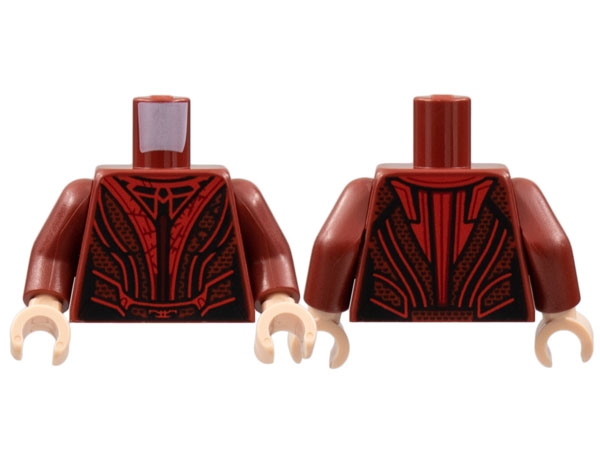 Torso Female Mesh Top, Red Vertical Webbing Pattern / Dark Red Arms / Light Nougat Hands
