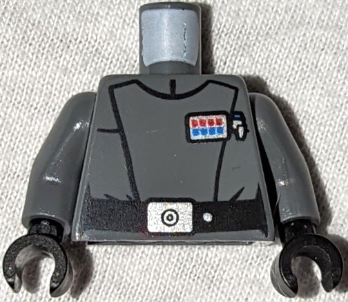 Torso SW Imperial Crew Uniform with Black Belt with Silver Buckle, Badge with 4 Red and 4 Blue Squares Pattern / Dark Bluish Gray Arms / Black Hands
