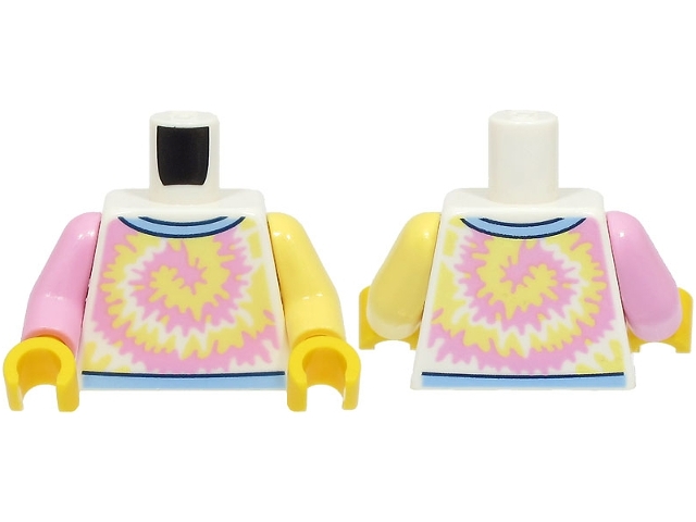 Torso Shirt Bright Pink and Bright Light Yellow Swirl, Bright Light Blue Collar Pattern / Bright Light Yellow Arm Left / Bright Pink Arm Right / Yellow Hands