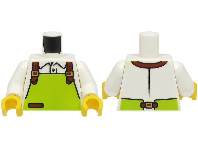 Torso Shirt and Lime Apron with Reddish Brown Pocket and Straps with Gold Buckles Pattern / White Arms / Yellow Hands