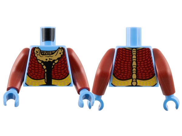 Torso Na'vi with Dark Red Jacket, Red and Yellow Spots, and Medium Nougat Bone Collar Pattern / Dark Red Arms Long / Medium Blue Hands