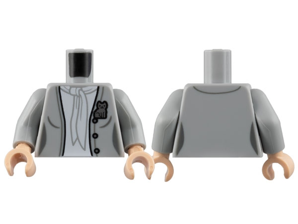 Torso Female Open Jacket with 3 Buttons, Silver Cat Pin, White Blouse and Scarf Pattern / Light Bluish Gray Arms / Light Nougat Hands