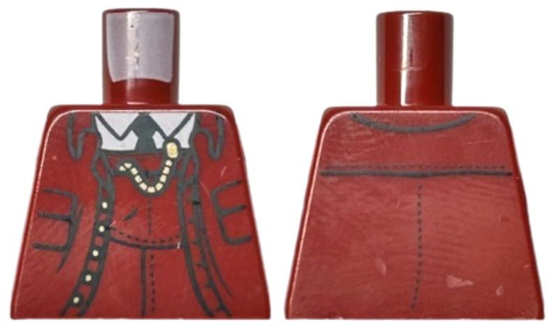 Torso Suit Jacket Open with Pockets and Gold Buttons over Vest and White Shirt, Black Tie, Watch Chain Pattern