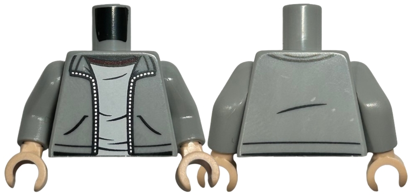 Torso Open Jacket with Silver Zipper over White T-Shirt with Dark Red Collar Pattern / Light Bluish Gray Arms / Light Nougat Hands