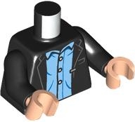 Torso Open Suit Jacket over Bright Light Blue Shirt with White Buttons Pattern / Black Arms / Light Nougat Hands