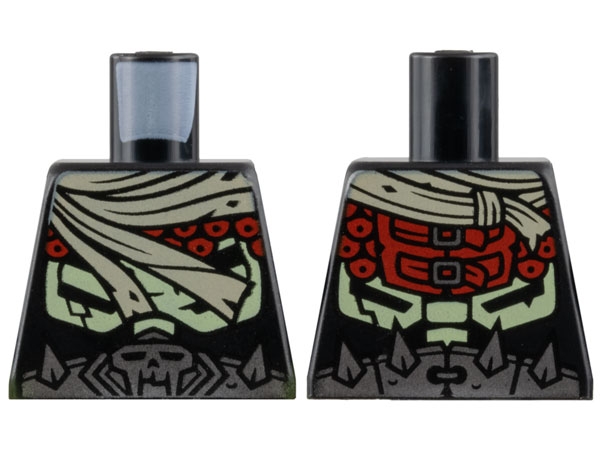 Torso Tan Scarf, Red Circles, Yellowish Green Ribs, Silver Belt with Skull and Spikes Pattern